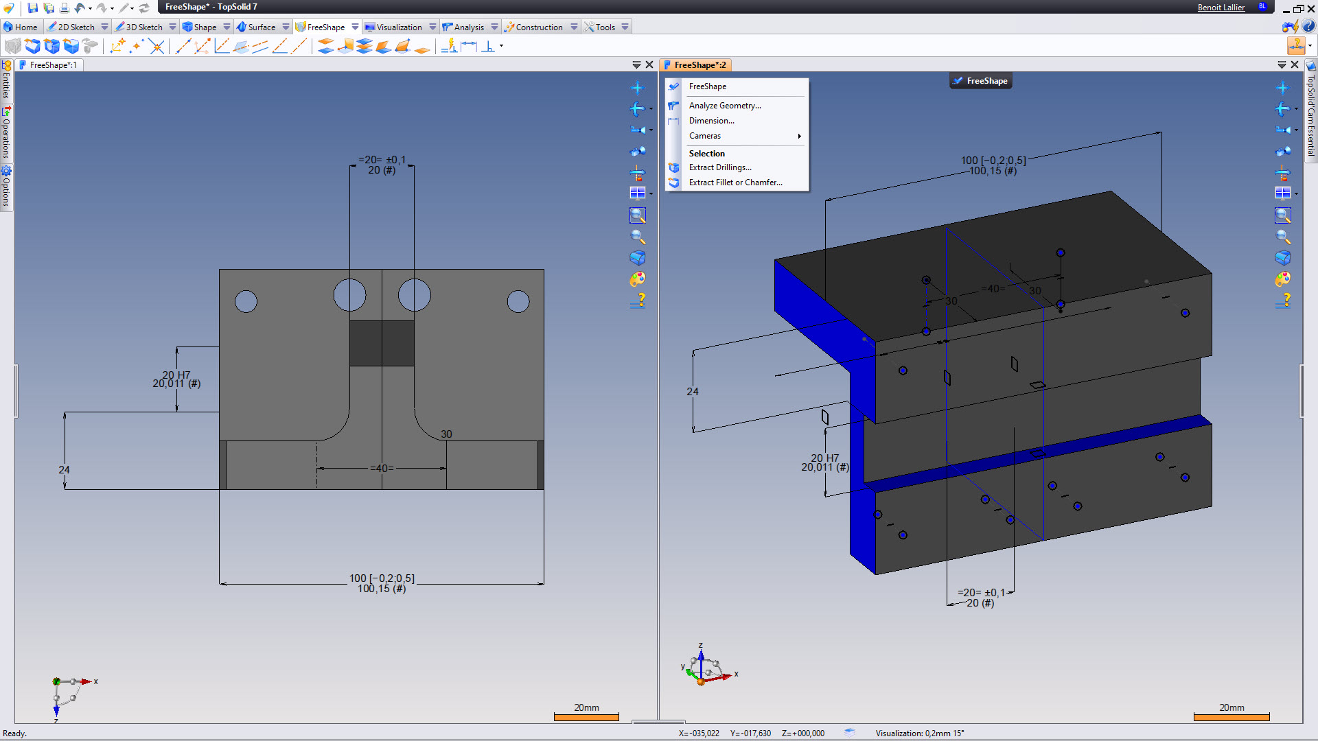 Finally, thanks to TopSolid'Cam Essential, you are able to quickly and easily modify imported 3D shapes using the FreeShape tool. This allows you to apply average dimensions to your parts before machining them.